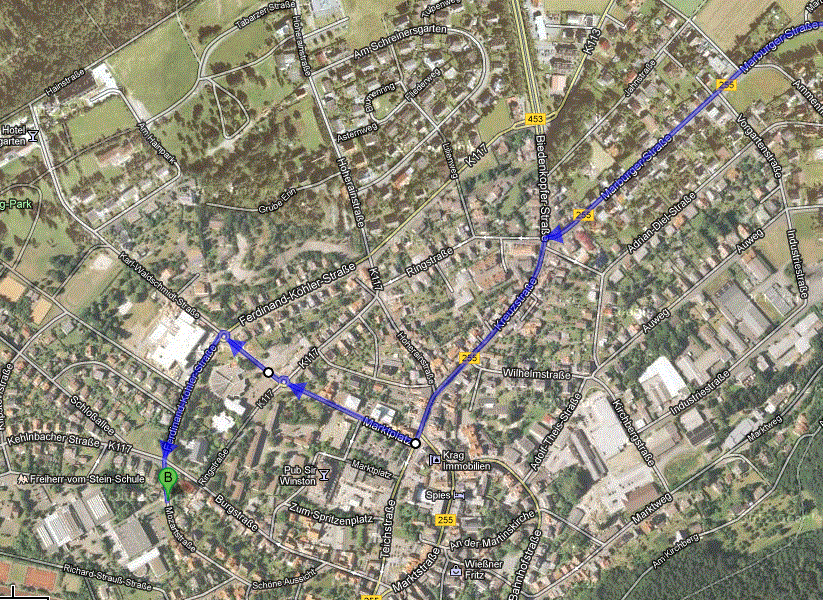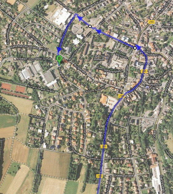 Auf der B 255 bis nach Gladenbach fahren. In Gladenbach auf der