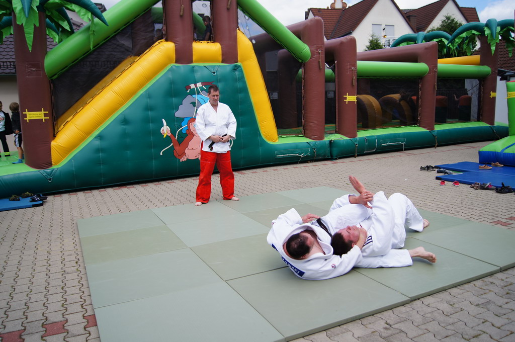 Begonnen wurde am Dienstag Mittag mit dem Aufbau des Lagers und der Matten. Anschließend gab es die erste Trainingseinheit mit anschließendem Randori. Danach hatten sich alle eine kleine Pause bei Kaffee, Saft und Kuchen verdient. Frisch gestärkt ging es dann an die zweite Trainingseinheit, die ebenfalls mit mehreren Randoris endete.
