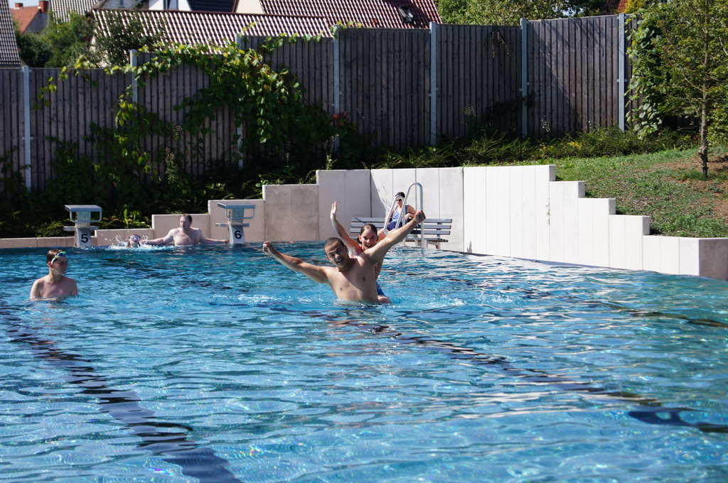Direkt danach wurde sich umgezogen und es ging ins Nautilust zum Schwimmen. Zum Ausklang gab es dann am Abend noch Pizza für Alle und es wurden zur Motivation für den nächsten Tag viele tolle Wettkampftechniken aus WM-Kämpfen gezeigt, professionell mit einem Beamer an die Wand geworfen. Geschafft ging es zum Schluss ins Bett.