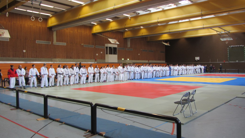 Über 100 Kämpferinnen und Kämpfer der beiden Altersgruppen U17 und U20 aus den Bundesländern Hessen, Rheinland-Pfalz und Saarland waren am Samstag, den 14.01.2012, zusammengekommen, um sich auf die Landeseinzelmeisterschaften in 2 Wochen vorzubereiten. Für diesen Ansturm war das Dojo des JC Wiesbaden zu klein.