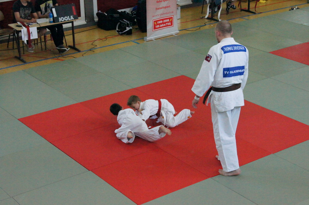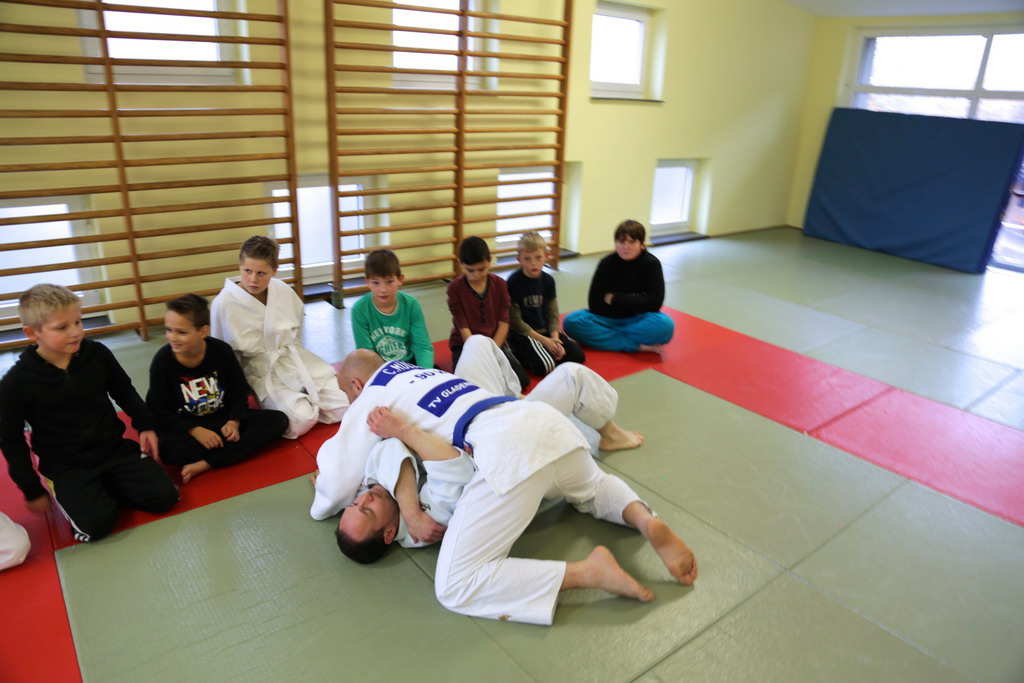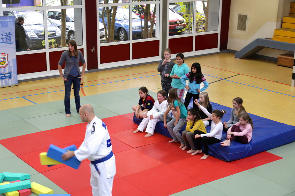 Durchgeführt wurde die Judostunde von Frank Nöh. Er ist seit 2001 bei der Judoabteilung des TV Gladenbach und ein ehemaliges Kindergartenkind. Er hat den 1.Kyu (brauner Gürtel) und macht dieses Jahr seinen 1.Dan (schwarzer Gürtel). Fünfmal hat er bei den hessischen Meisterschaften teilgenommen, dreimal den ersten Platz belegt. Dazu noch dreimal bei den deutschen Meisterschaften teilgenommen, davon zweimal den 7. und einmal den 9.Platz belegt.