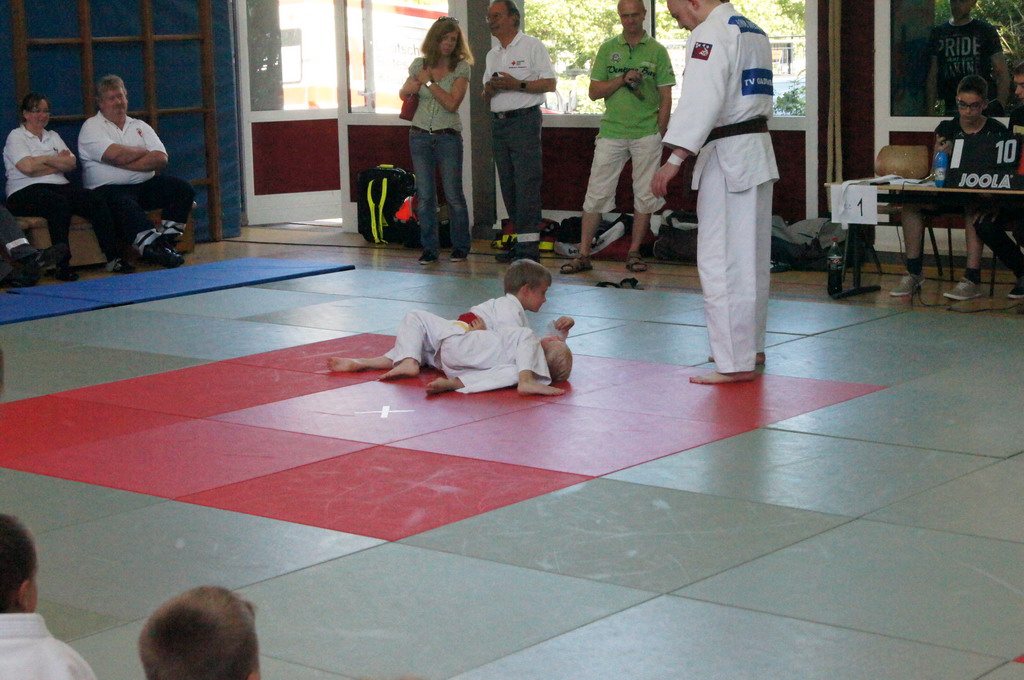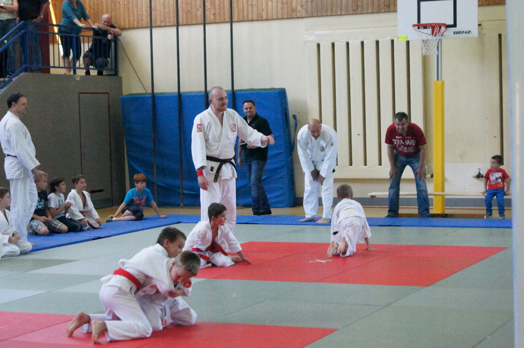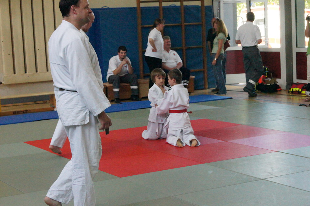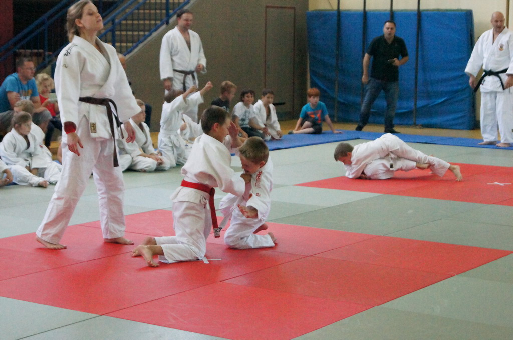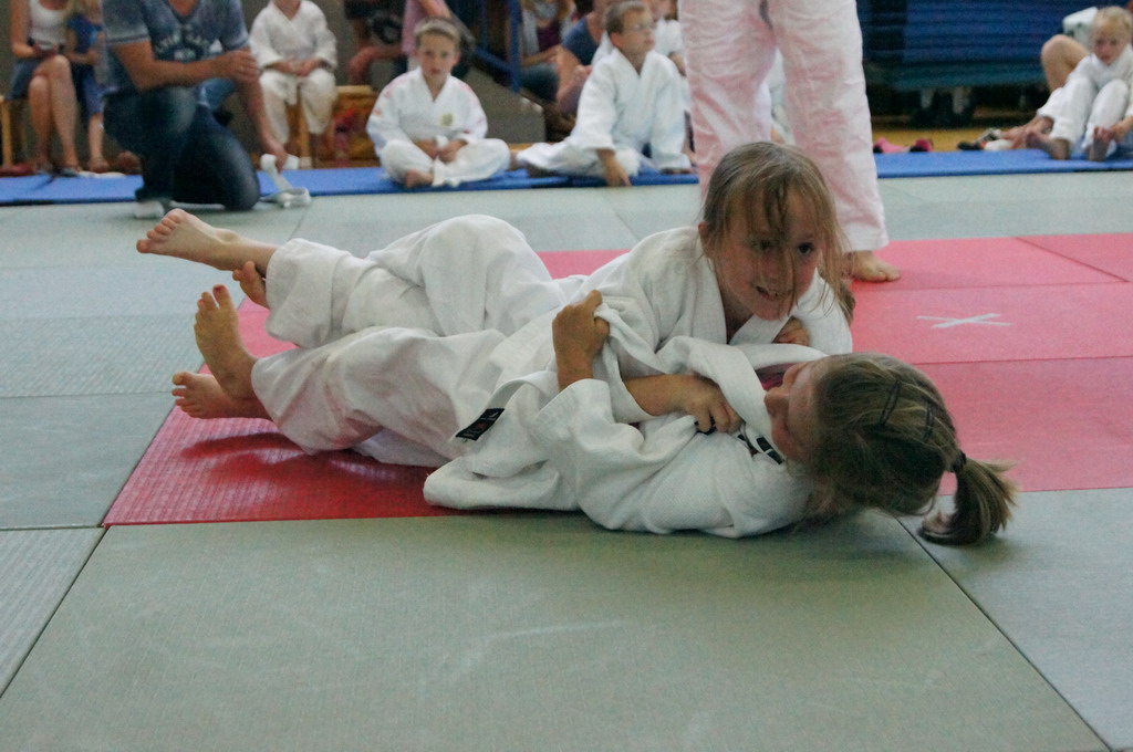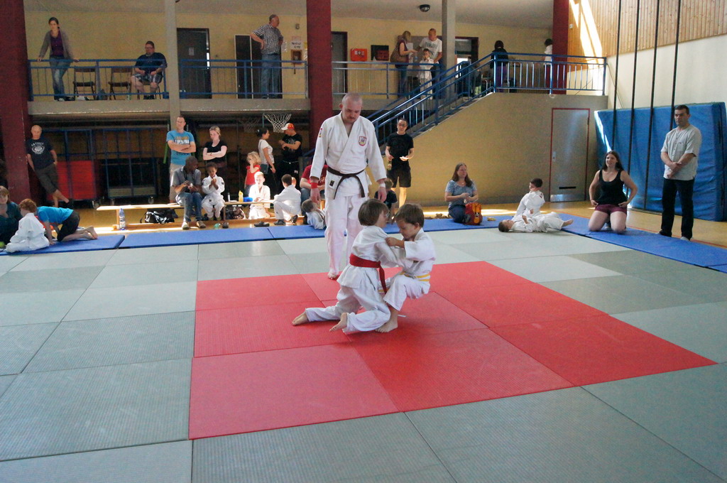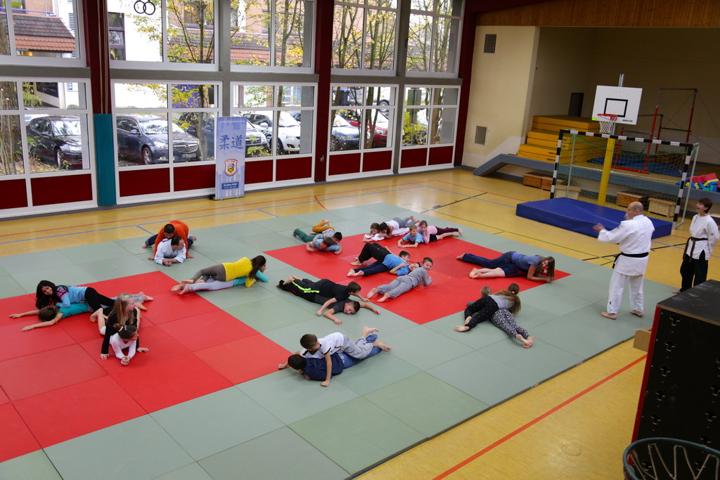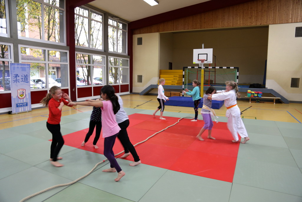 Mit großem Einfühlungsvermögen und durch gekonnte Fallübungen wurde den Kindern sehr eindrucksvoll der Judosport demonstriert. Es wurden schon kleine Zweikämpfe auf der Matte ausgetragen, bei denen genau auf die richtige Grifftechnik und das richtige Fallen geachtet wurde. Zum Abschluss gab es ein Gruppenspiel, bei dem die Kinder durch strategisches Denken und Handeln zum Gewinn des Spiels kommen sollten.