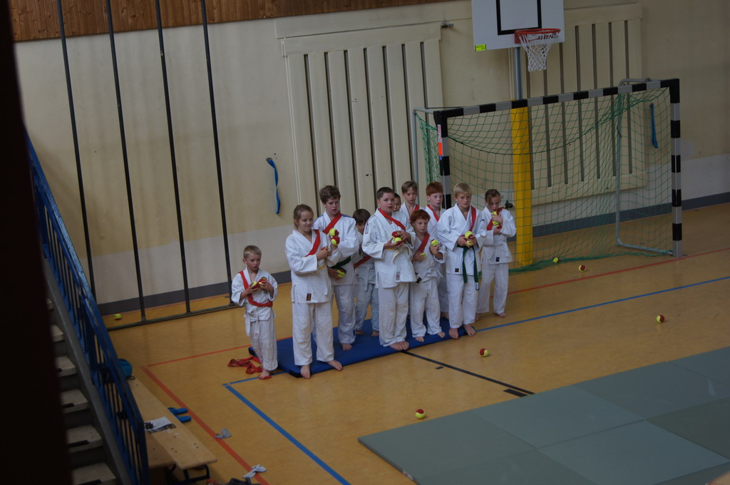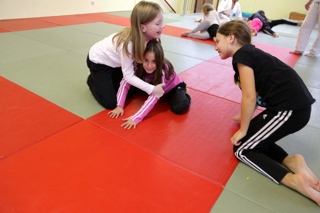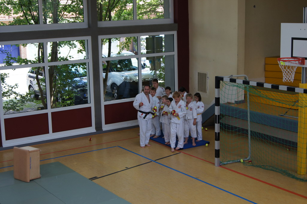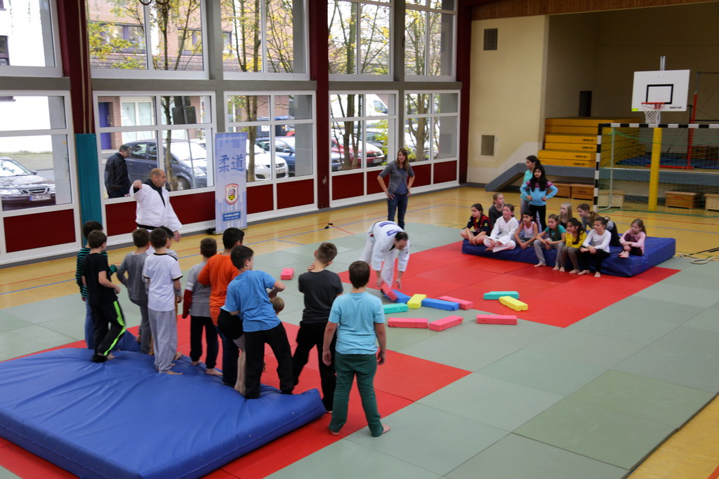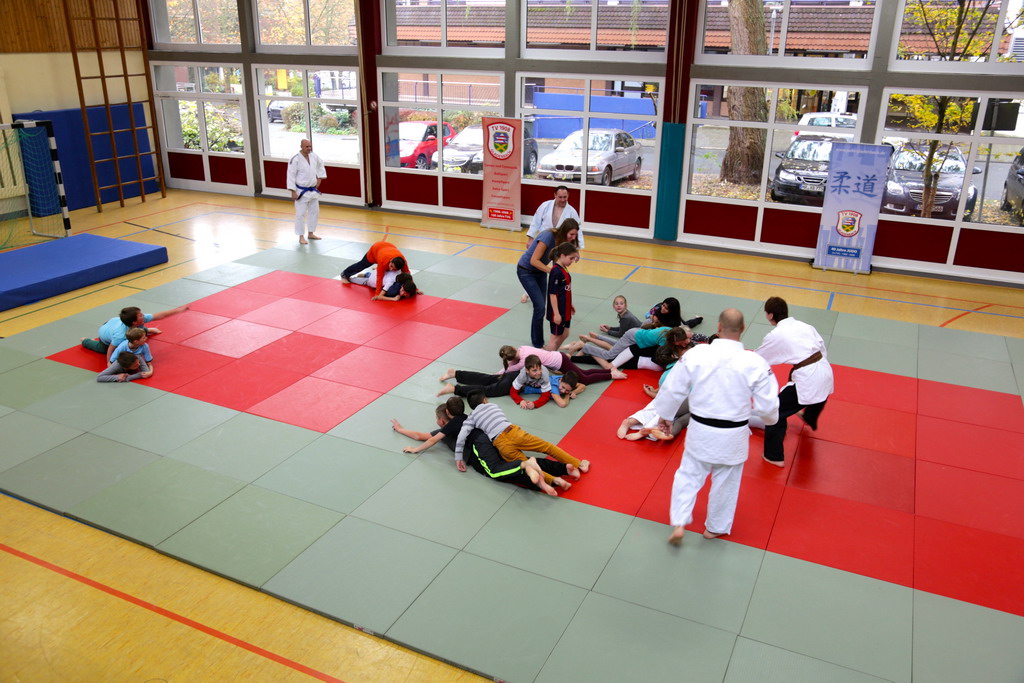 In der Aufwärmphase wurden verschiedene Bewegungsspiele gespielt, bei denen Ausdauer gefragt war. Es wurde Grundsätzliches über den Judosport gesprochen, und die Kinder lernten die "Judosprache" kennen und das "sich begrüßen" wurde geübt.
